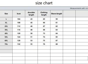 L, XL, 2XL, 3XL, 4XL, 5XL, 6XL, 7XL, 8XL